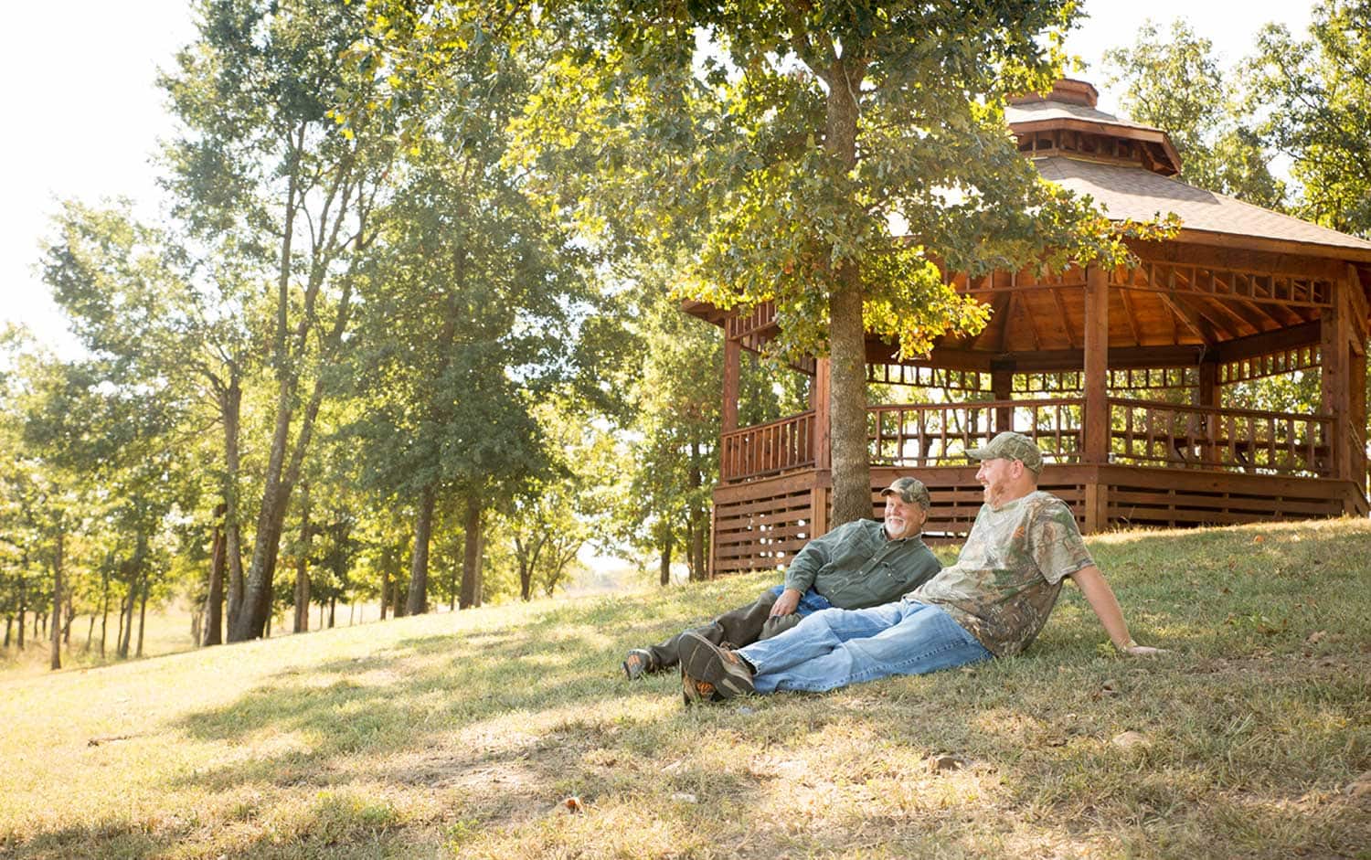 In addition to its sprawling acreage of hills, valleys and paths, a serene, fully stocked lake lies about a hundred steps away from the Lodge’s front porch, making the Choctaw Hunting Lodge an ideal location for a weekend filled with hiking and outdoor adventures.